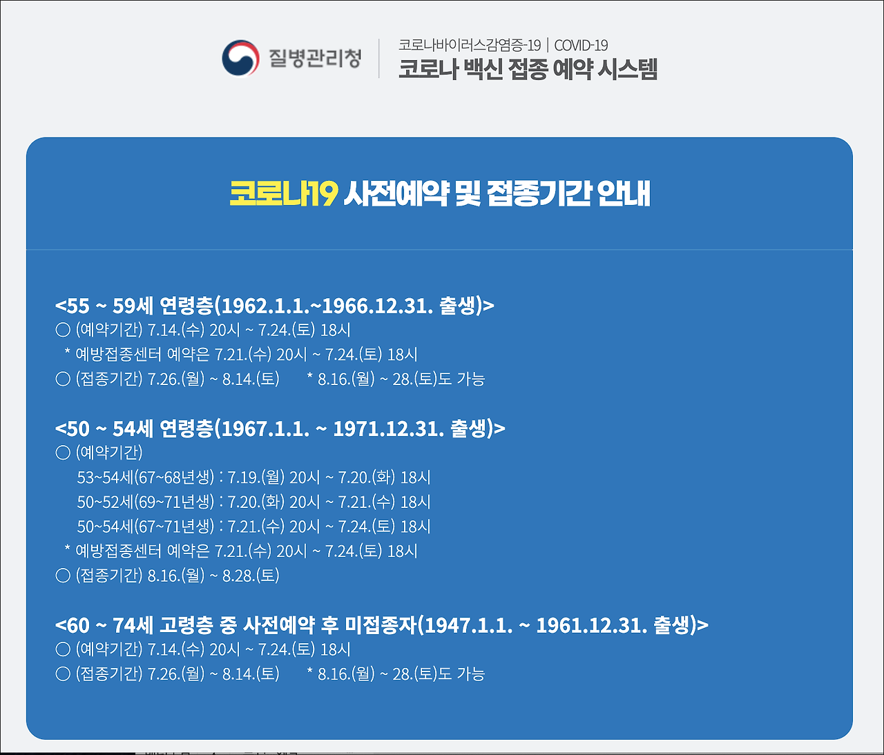 Jun 01, 2021 · 대상자는 사전예약 기간 내에 예방접종 사전예약 사이트나 모바일을 통해 가까운 예방접종센터를 선택해 접종 일시를 예약하면 된다.